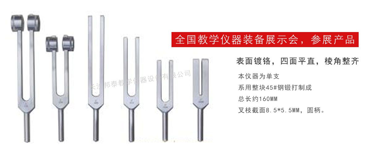 共振音叉供中等學校演示聲音的共鳴。干涉和“拍”,在聲速的測定和聲音在固體。液體的傳播等實驗中,可用音叉做聲源,也可做一般音叉的各種實驗,如音的發(fā)生,干涉,各種物質對音的傳導等。